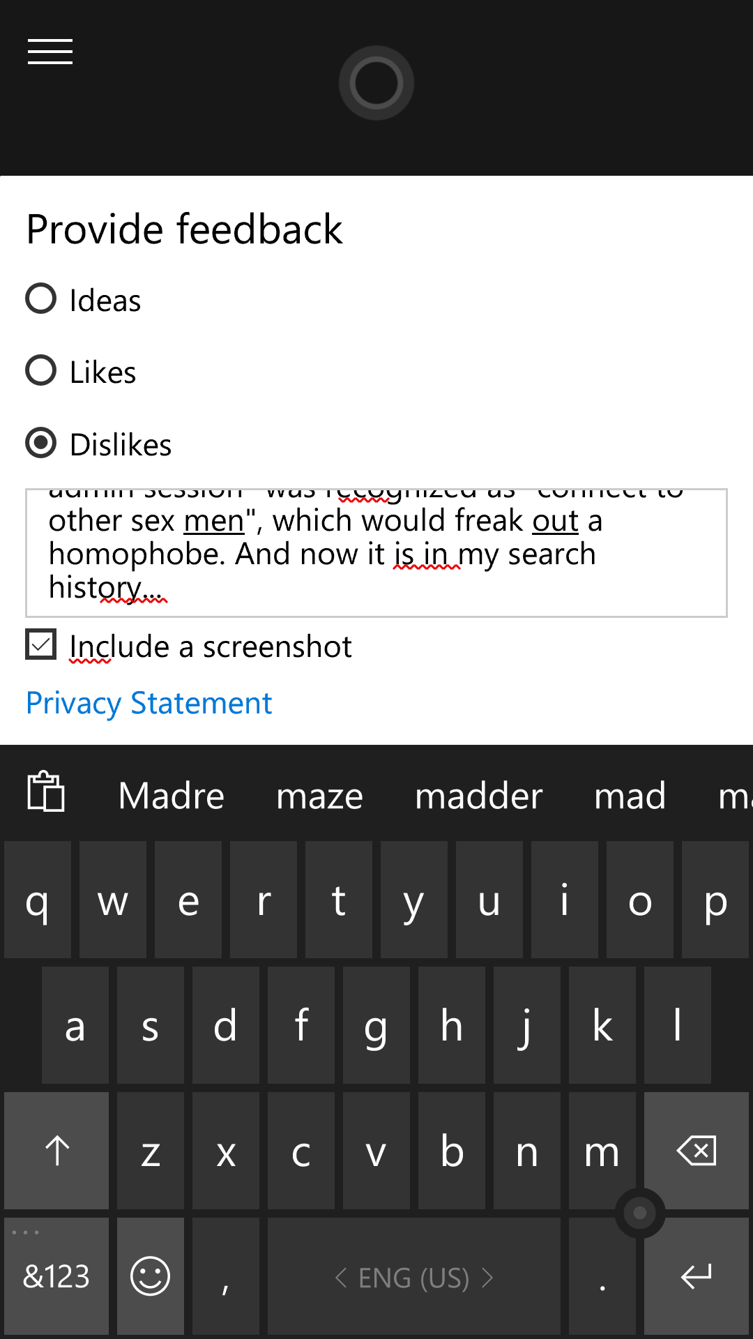 Also searching for "connect to admin session" was recognized as "connect to other men sex", which would freak out a homophobe. And now it is in my search history... And I can't delete it because I don't want to lose my thousands of other searches as collateral damage. Why can we only delete everything but not a single item at once. Where is selective history editing?
